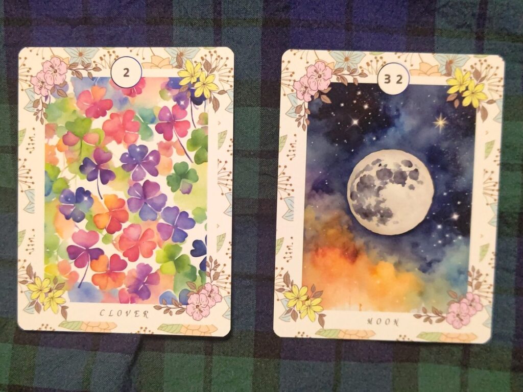 クローバーと月。悪くない印象だけど、月って遠くにあるよねと思いました。相手が船とか道ではないから、遠いという見方はしないかな。
