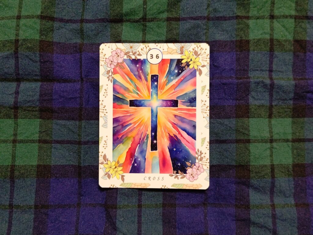 朝の十字架はまるで当たってなかったけど、もしかしたらイメージをちゃんとしなかったせいで、相応の適当なカードが出たかなと思いました。